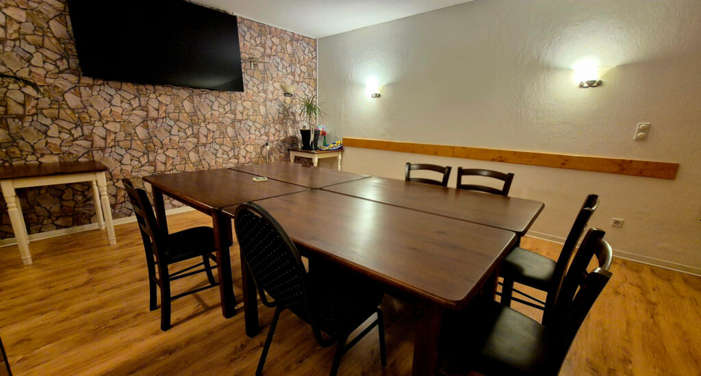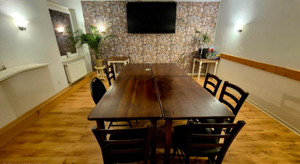 Unser gemütlicher Saal mit erhöhter Bühne (ca. 6 × 3 m) bietet den perfekten Rahmen für Veranstaltungen aller Art – von privaten Feiern über Vereinsabende bis hin zu kleinen Konzerten oder Vorträgen.