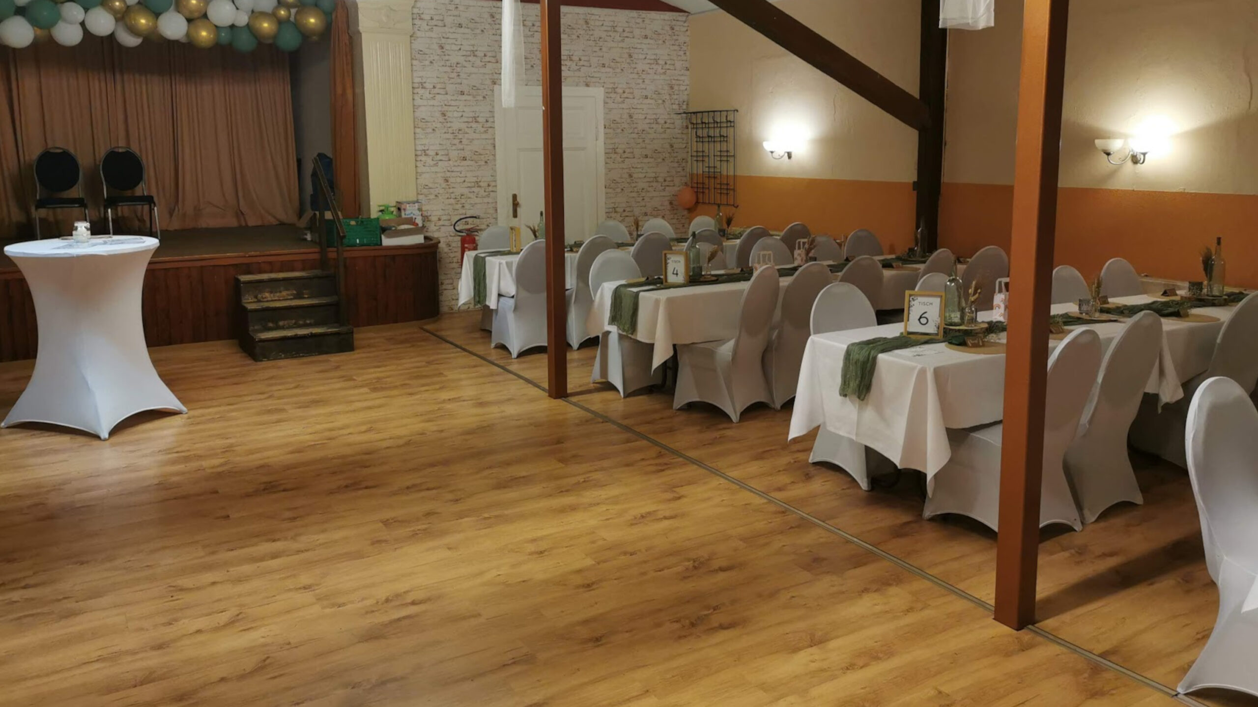 Unser gemütlicher Saal mit erhöhter Bühne (ca. 6 × 3 m) bietet den perfekten Rahmen für Veranstaltungen aller Art – von privaten Feiern über Vereinsabende bis hin zu kleinen Konzerten oder Vorträgen.